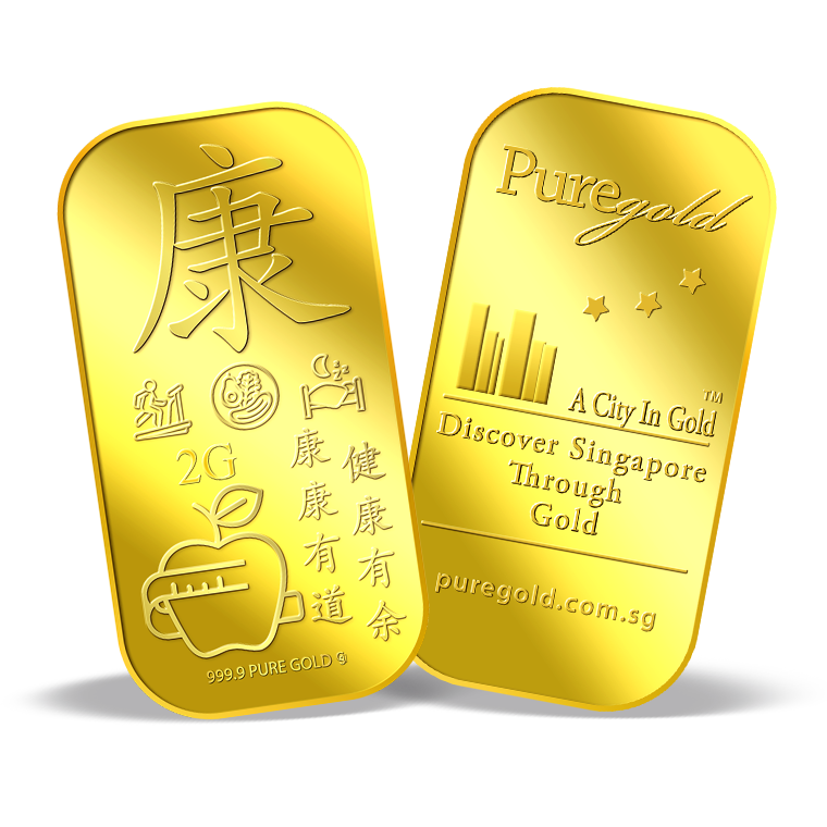 The image is embossed on a 2 grams 999.9 fine gold bar.