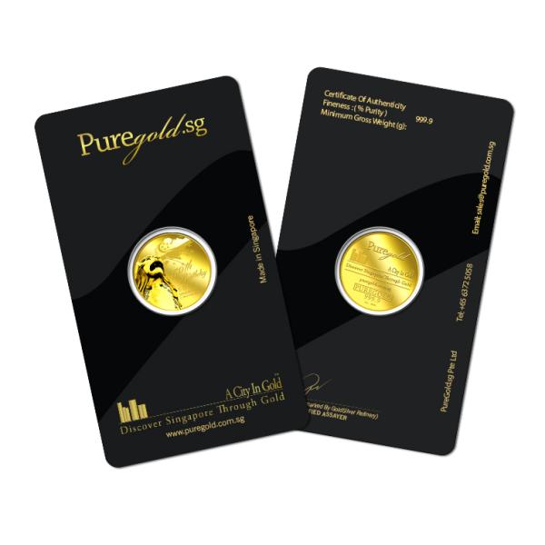The image of Singapore’s national mascot, the Merlion, is embossed on a 5g 999.9 fine gold Medallion.