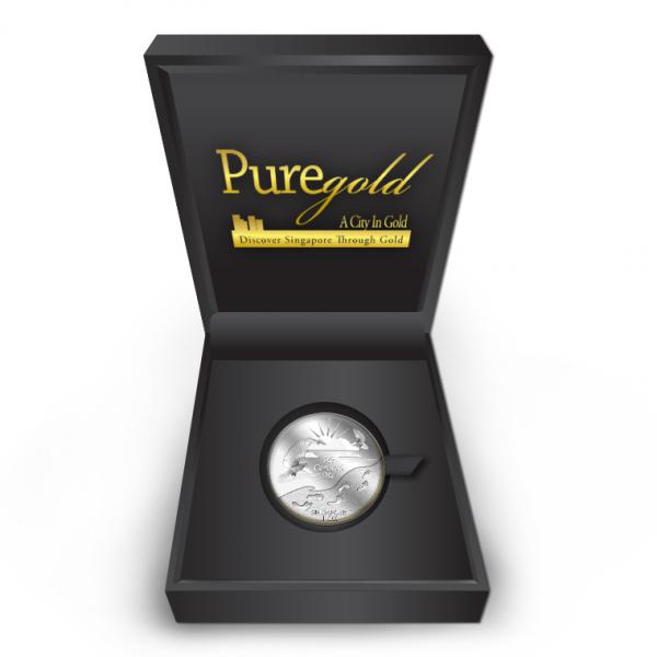 The He Carrieth Me silver medallion design portrays a beautiful image of the sun rising from behind the clouds, two doves, and a set of footprints. The design also includes the inscription HE CARRIETH ME, SINGAPORE, the medallion’s weight and GoldSilver Refinery’s “GS” logo mark.
