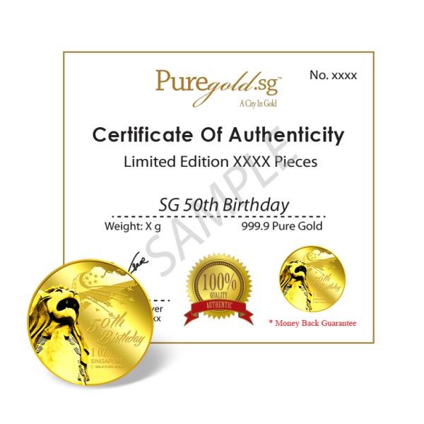 PureGold.sg will release not more than 2000 pieces of the Singapore's 50thBirthday 1oz 999.9 fine gold Medallion.