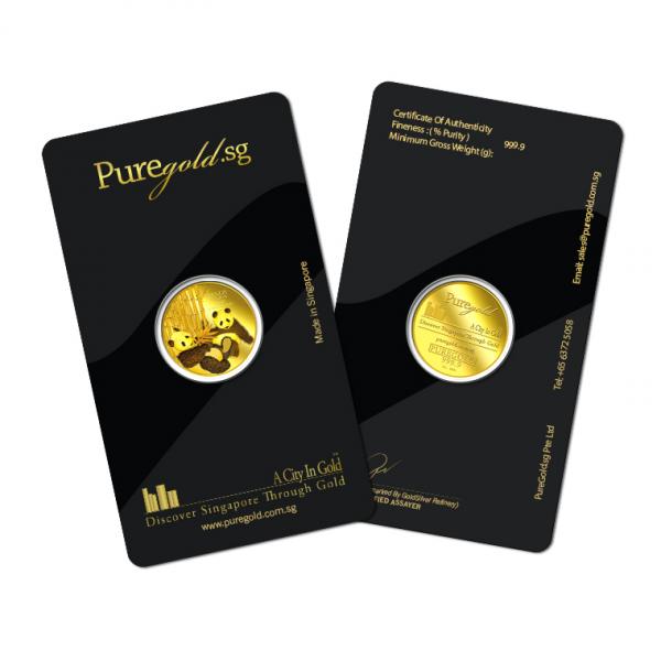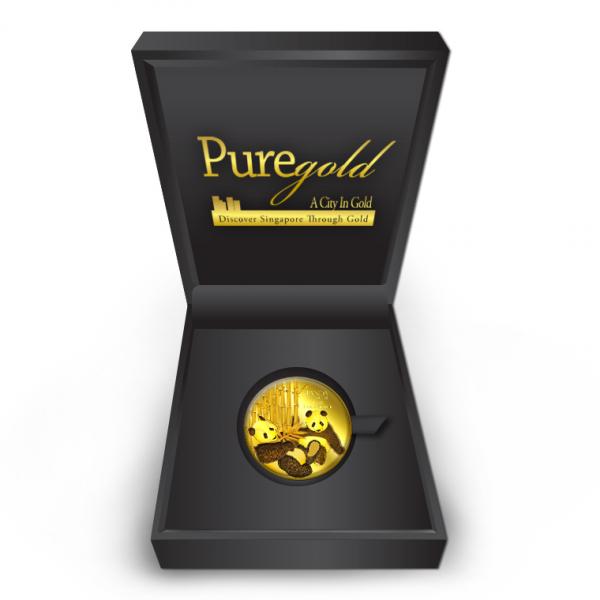 The image of the two giant pandas is embossed on a 1oz 999.9 fine gold.