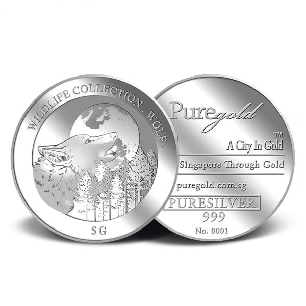 The image of a Wolf is embossed on a 5g 999 fine silver.