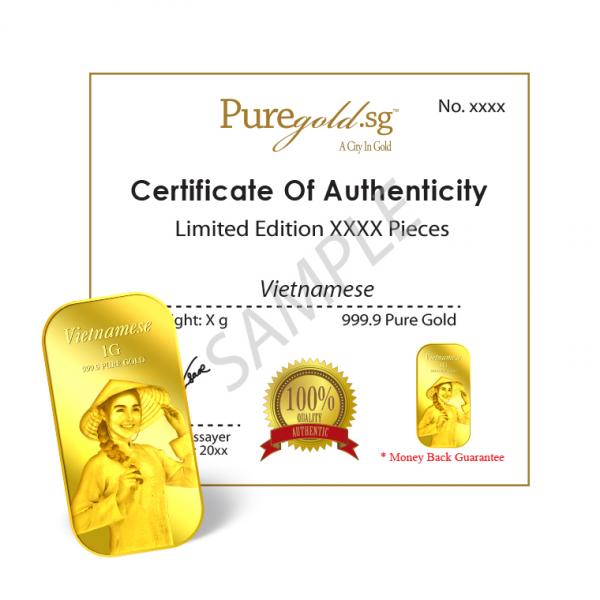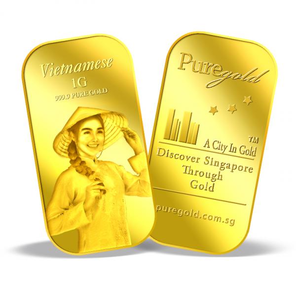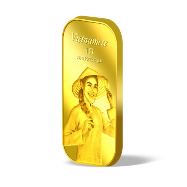The image of the Vietnamese is embossed on a 1g 999.9 fine gold bar.