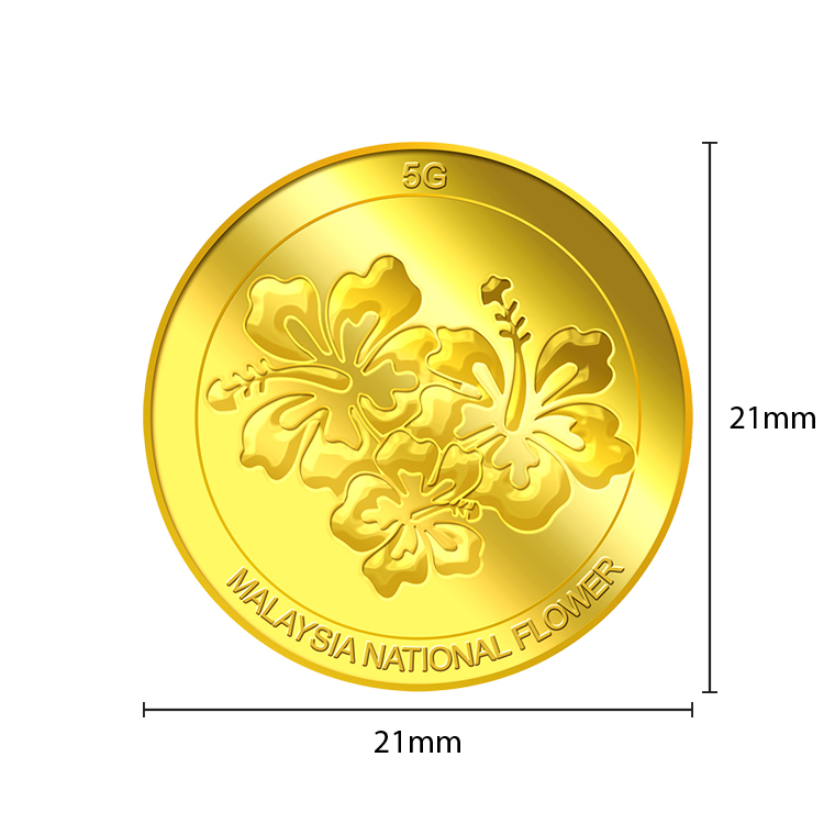 The image of the Hibiscus is embossed on a 5g 999.9 fine gold Medallion.