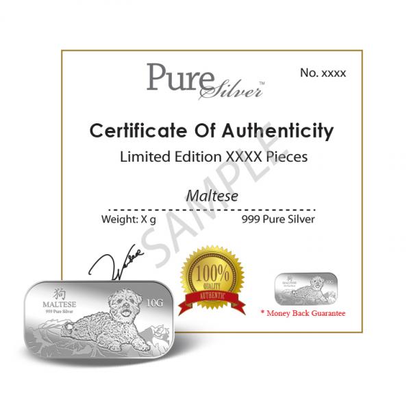 The image of the Maltese is embossed on a 10g 999 fine silver.