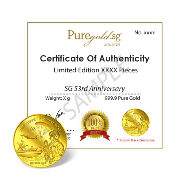 The celebration at the National Day Parade is never complete without the Singapore Armed Forces’ combined army, navy and air-force march-past. The military march-past is always one of the highlights at the parade that delights everyone. Most Singaporeans would have themselves or family members served National Service and the NDP is a major annual event to honour the commitment of our military personnel. The image of Singapore’s army, navy and air-force personnel on PureGold.sg’s SG53 Medallion is our recognition that they have contributed and sacrificed much for our nation’s security, stability and progress.