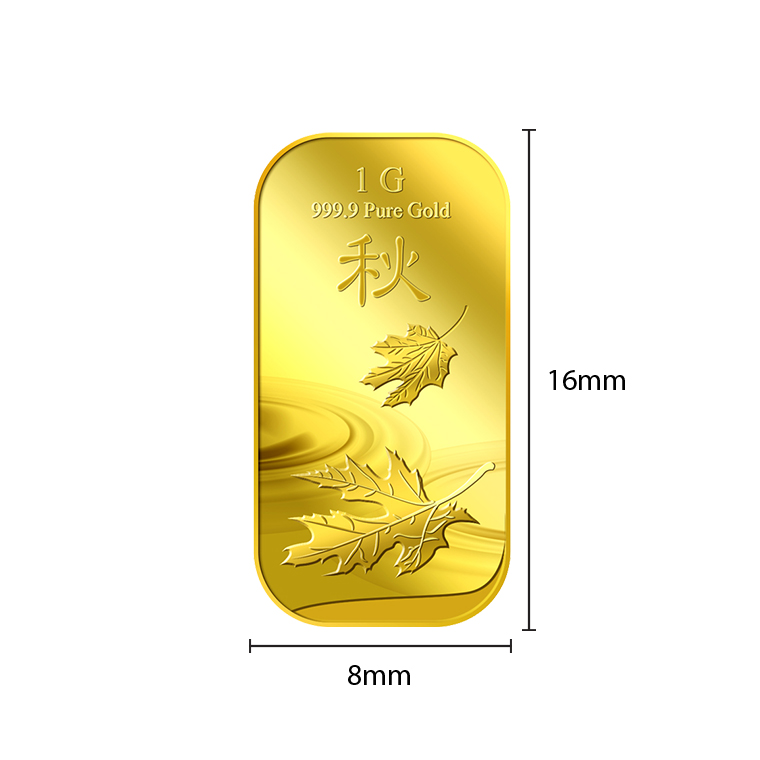 The image is embossed on a 1g 999.9 fine gold bar.