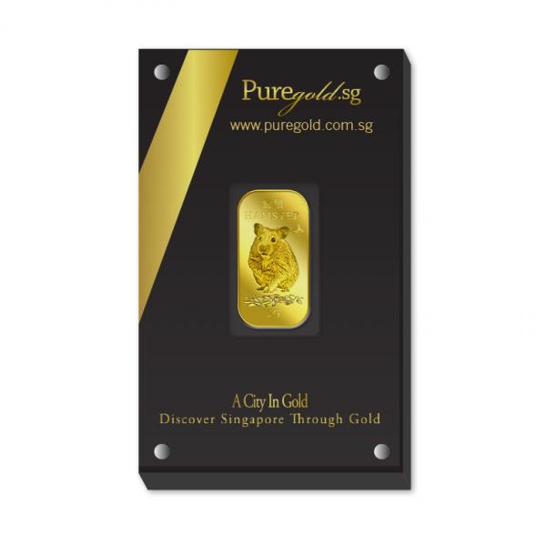 The image is embossed on a 5 grams 999.9 fine gold bar.