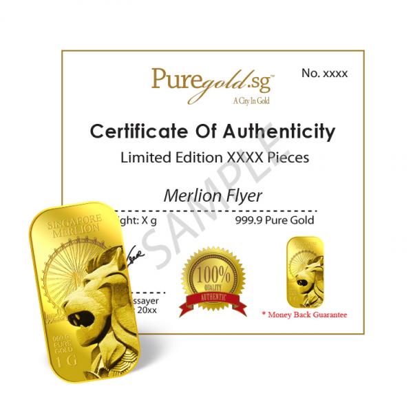 The image is embossed on a 1 gram 999.9 fine gold bar.