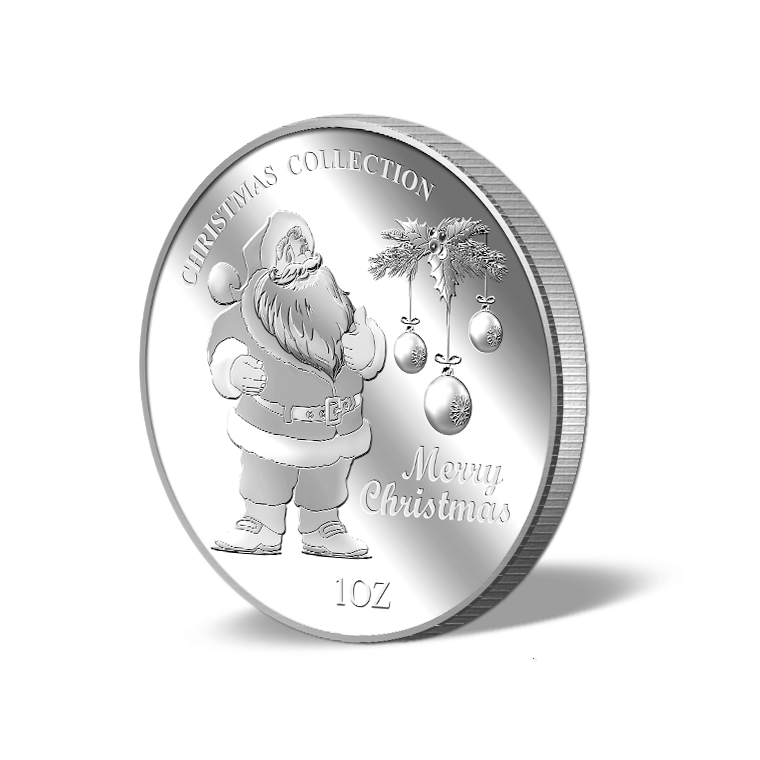 The image is embossed on a 1 troy oz 999 fine silver medallion.