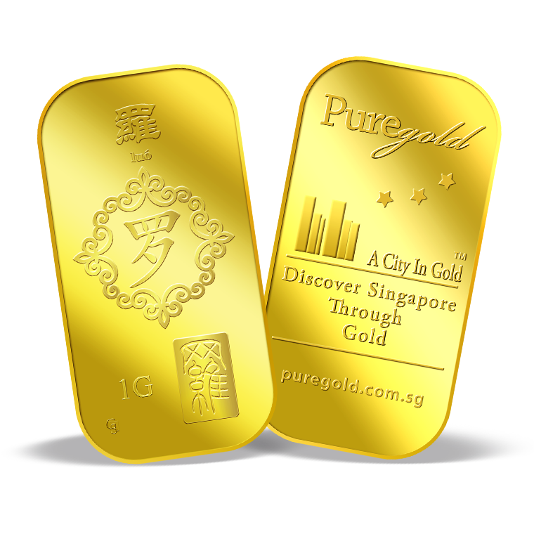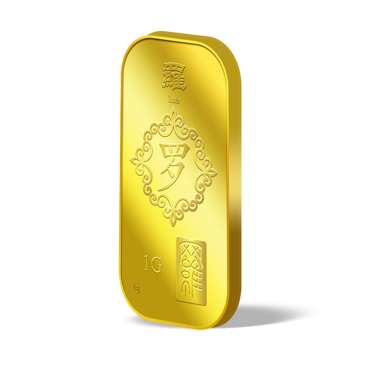 The image is embossed on a 1 gram 999.9 fine gold bar.
