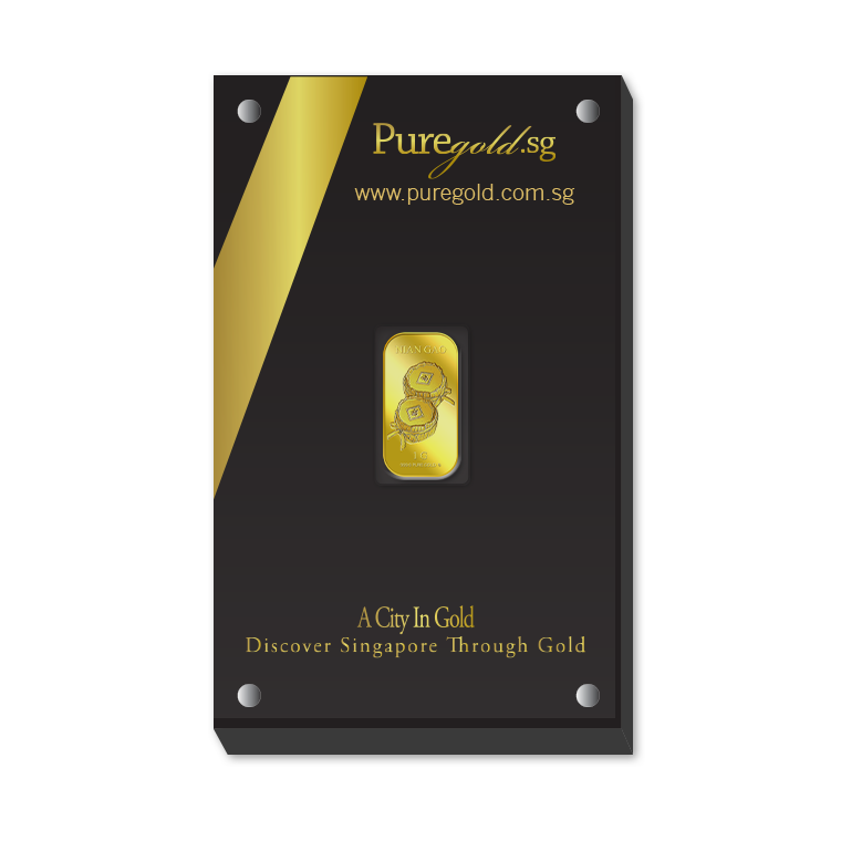 The image is embossed on a 1 gram 999.9 fine gold bar.