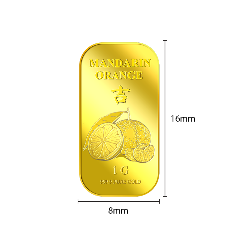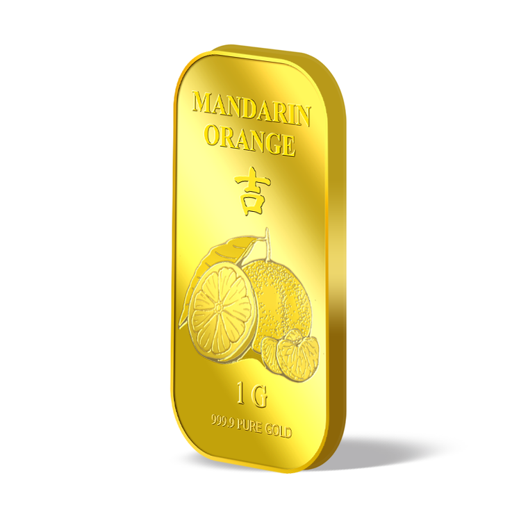 The image is embossed on a 1 gram 999.9 fine gold bar.