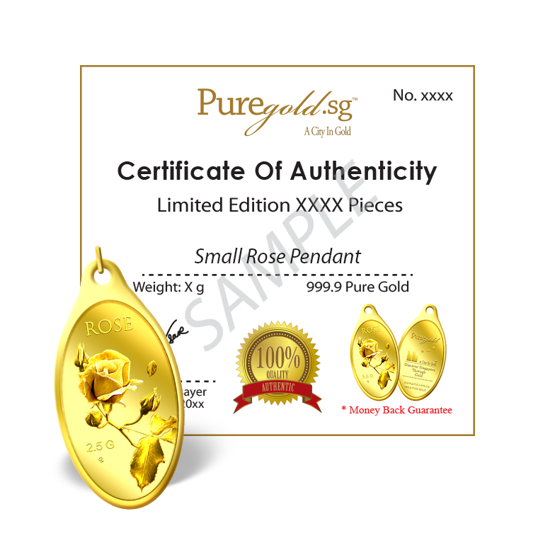 The image is embossed on a 2.5g 999.9 fine gold medallion.