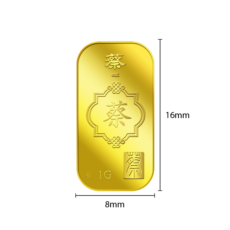 The image is embossed on a 1 gram 999.9 fine gold bar.