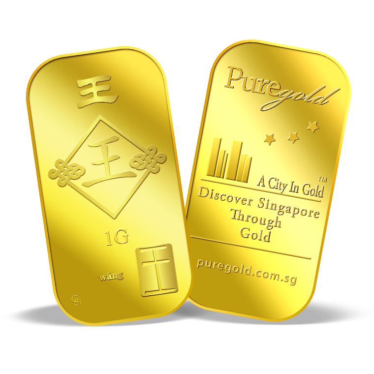 The image is embossed on a 1 gram 999.9 fine gold bar.