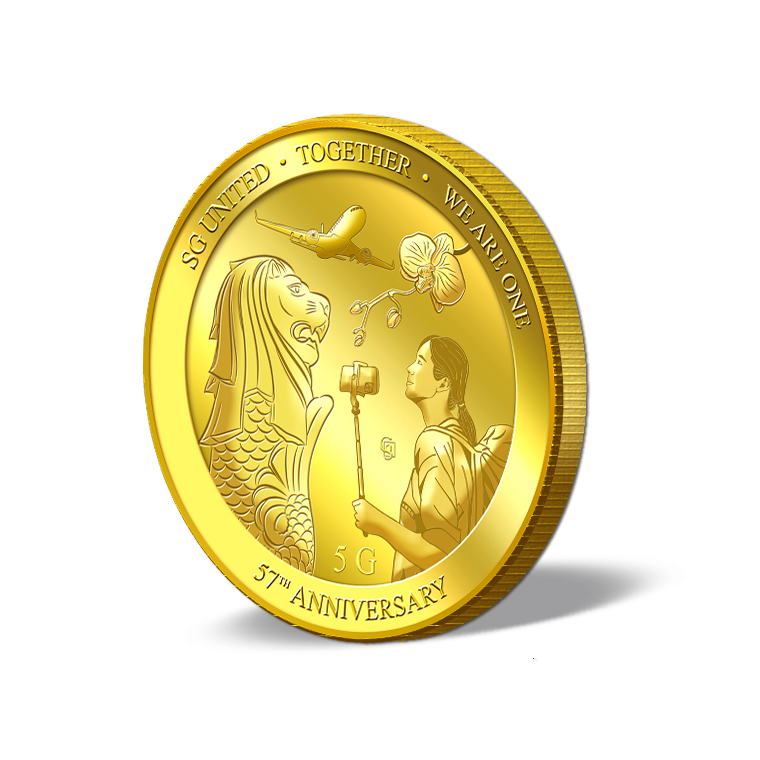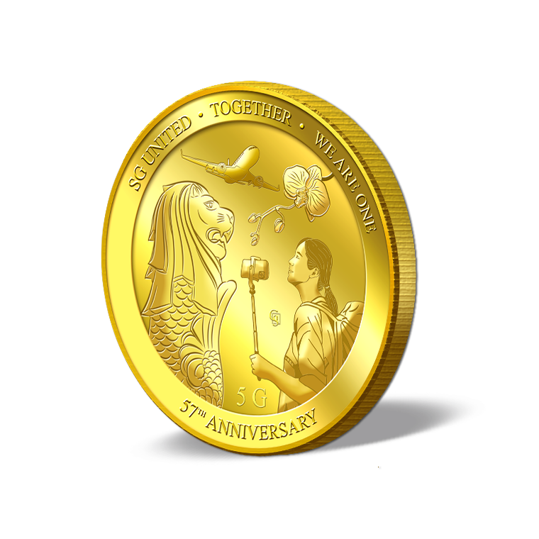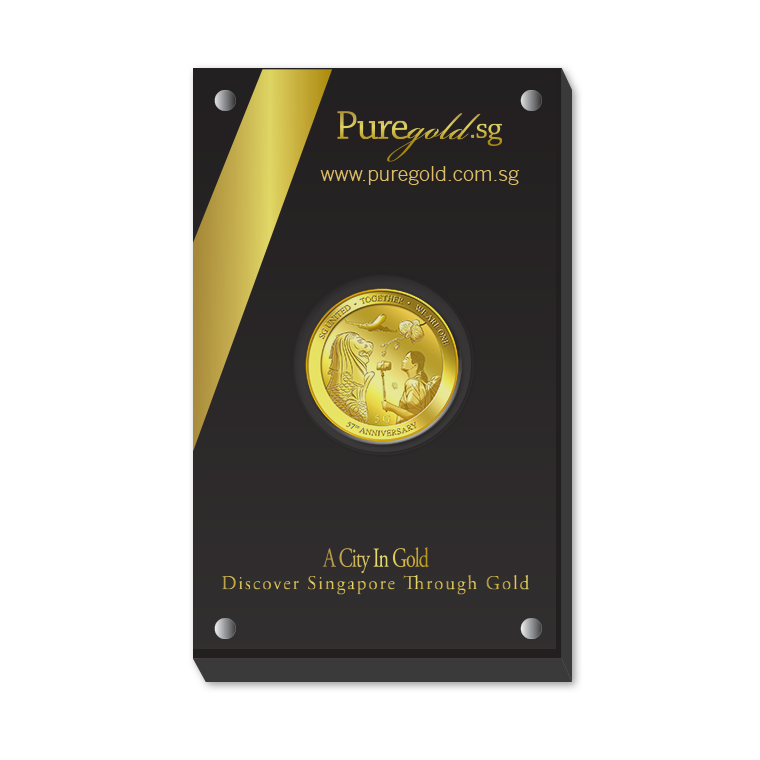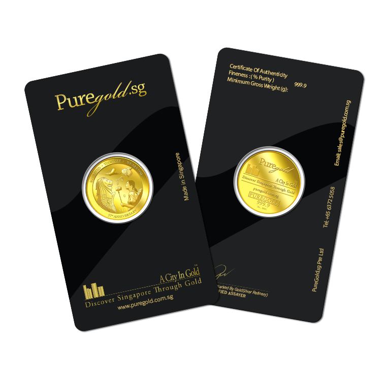 The image is embossed on a 5 grams 999.9 fine gold medallion.
