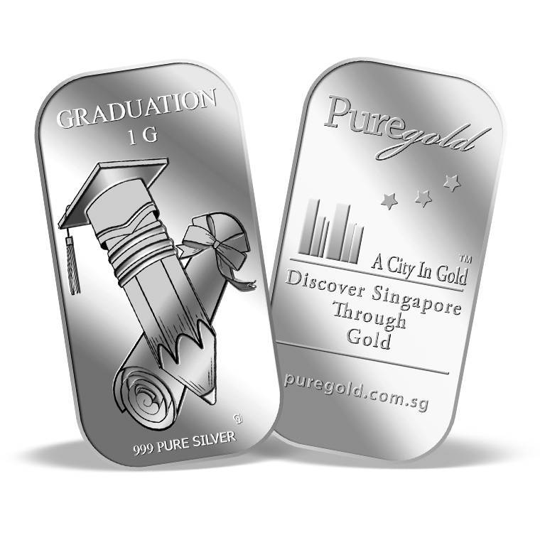 The image is embossed on a 1 gram 999 fine silver bar.