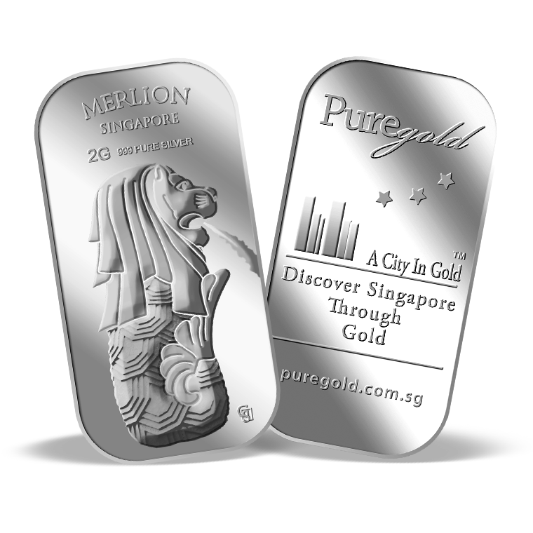 The new version of the Singapore Merlion gold bar design portrays Singapore’s national mascot, the Merlion, as a fountain with water gushing out from its mouth. The design also includes the inscription SINGAPORE «MERLION, the Medallion’s weight and fineness, and PureGold webpage address.