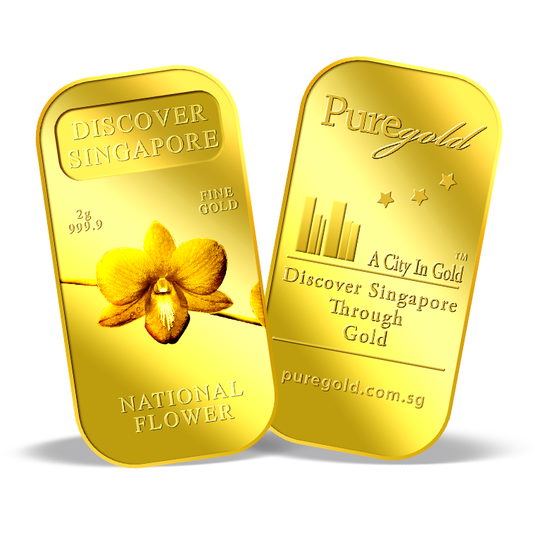 The image of Singapore’s national flower, Vanda Miss Joaquim Orchid, is embossed on a 5g 999.9 fine gold bar.