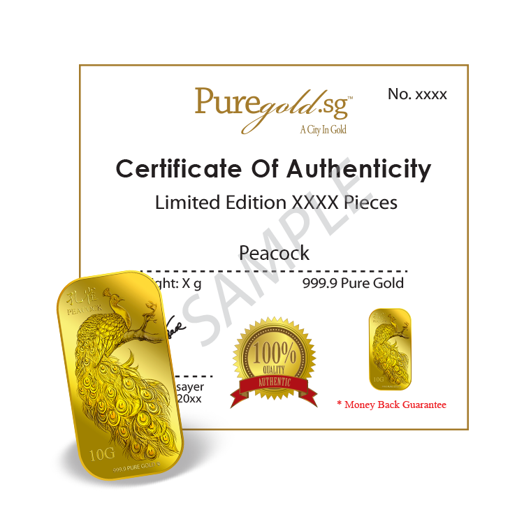 1Oz Golden Peacock Gold Bar