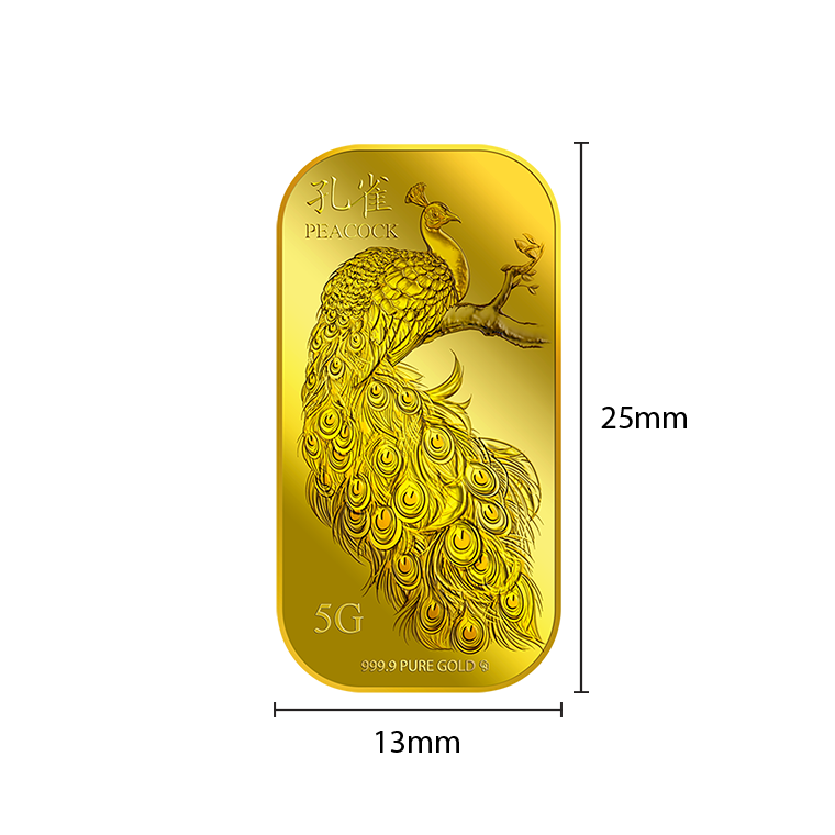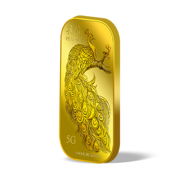 The image is embossed on a 5 grams 999.9 fine gold bar.