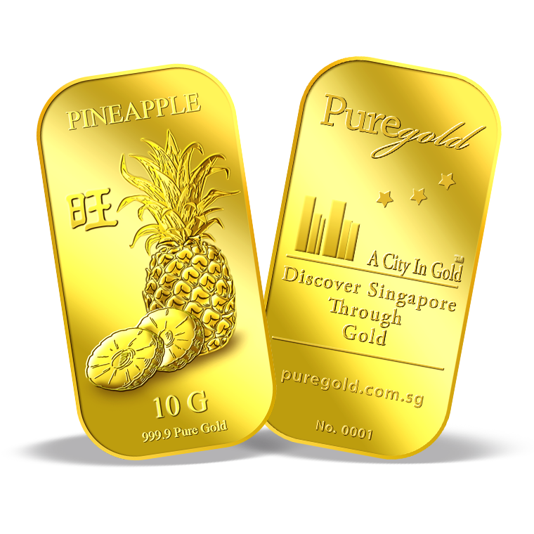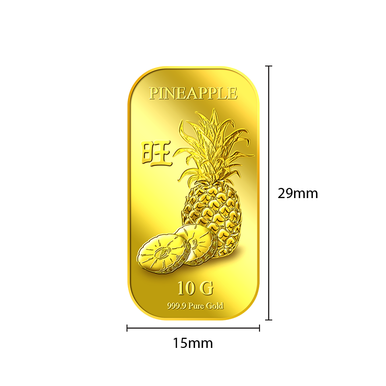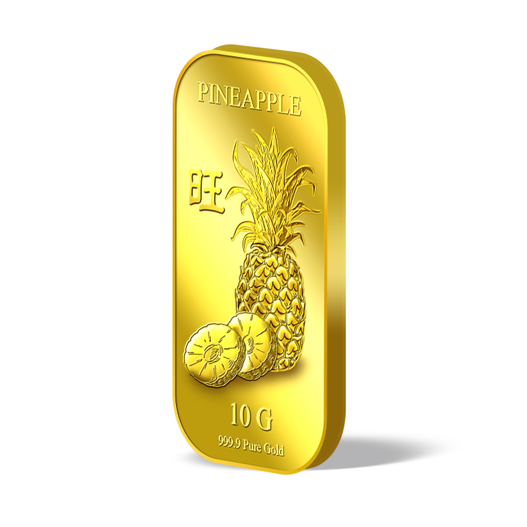 The image is embossed on a 10 grams 999.9 fine gold bar.