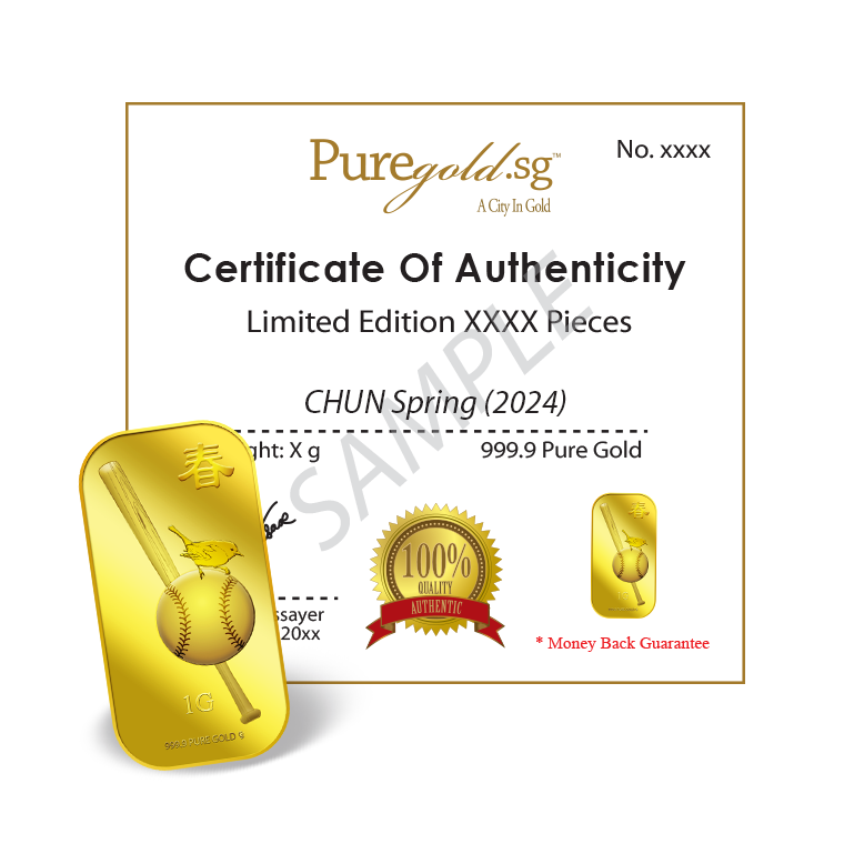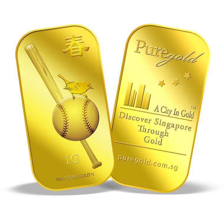 The image is embossed on a 1 gram 999.9 fine gold bar.