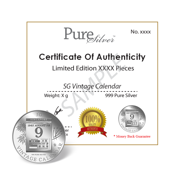 5g SG Vintage Calendar Silver Medallion