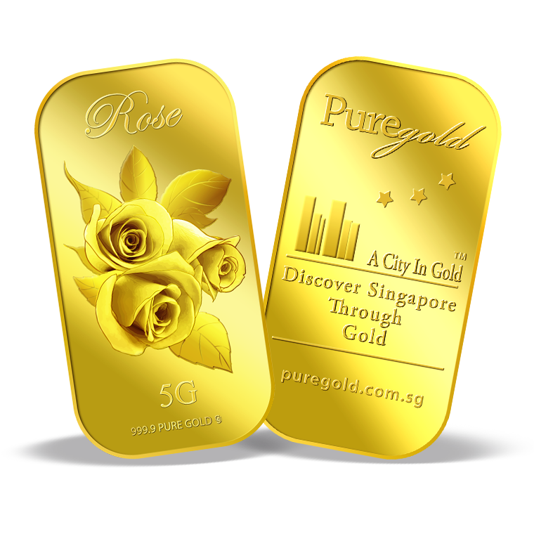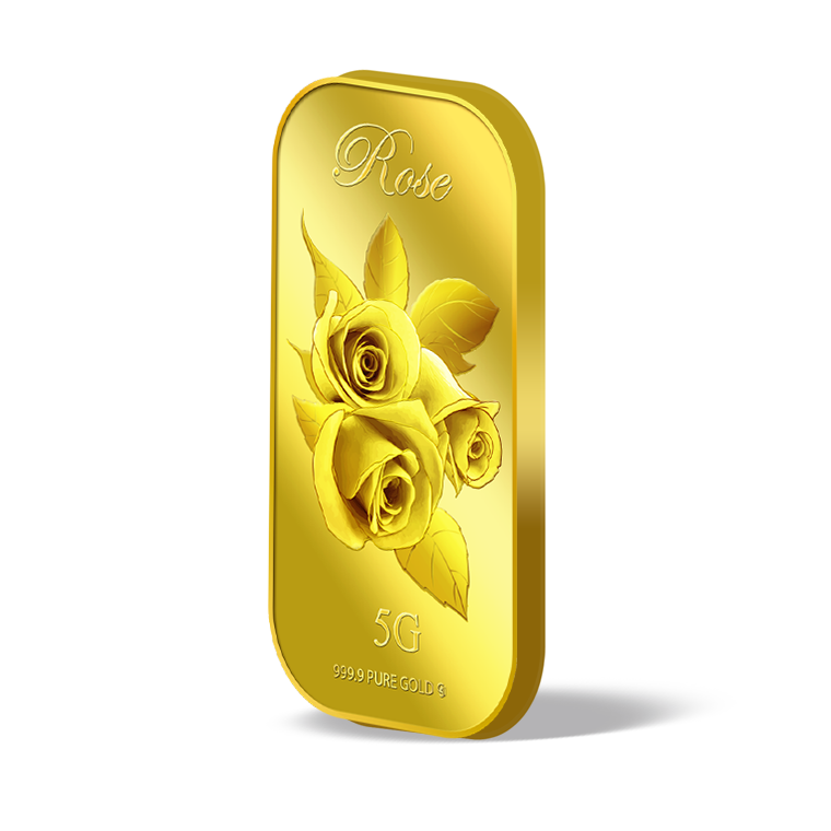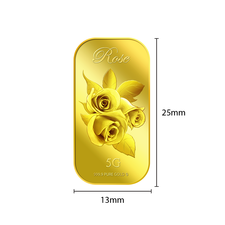 In this uniquely designed gold bar, the big single gold rose with leaves represents joy, gladness, friendship and hope, making this gold bar a perfect gift for loved ones or close friends to show them that we rejoice in their happiness.