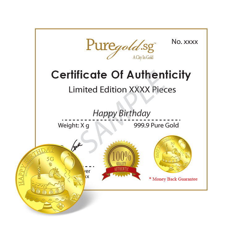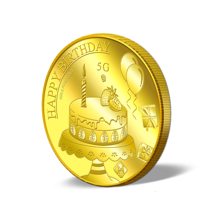 The image is embossed on a 5 grams 999.9 fine gold medallion.