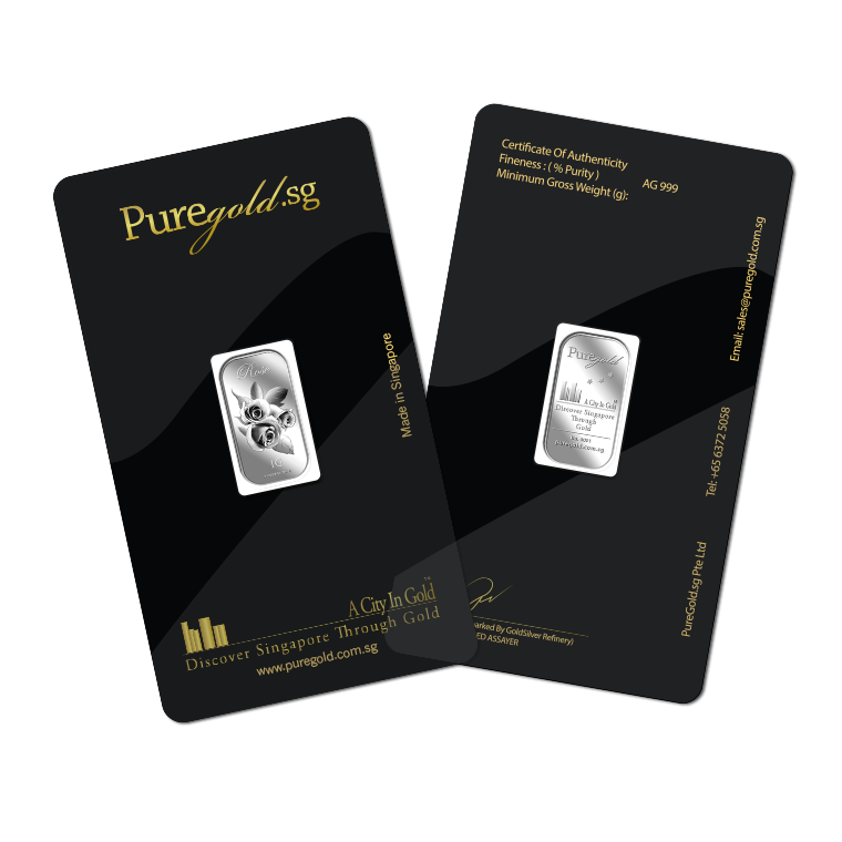 The image is embossed on a 1 gram 999 fine silver bar.