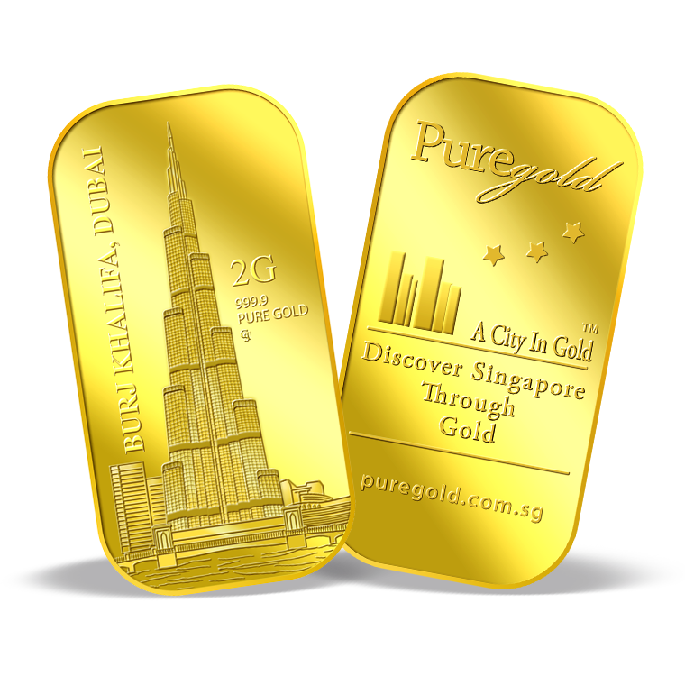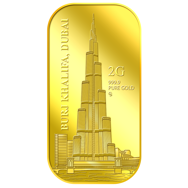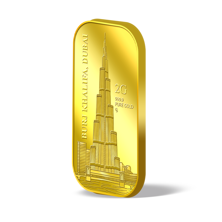 The image is embossed on a 2 grams 999.9 fine gold bar.