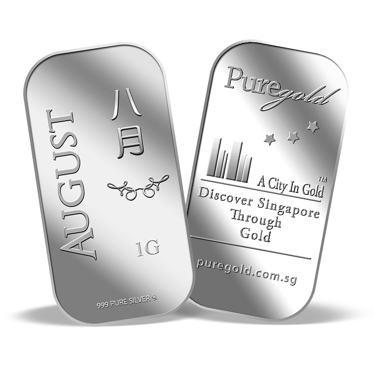 The image is embossed on a 1 gram 999 fine silver bar.