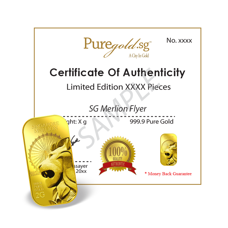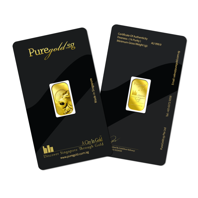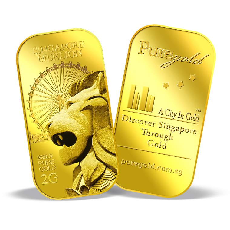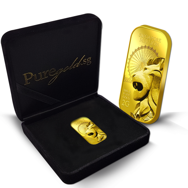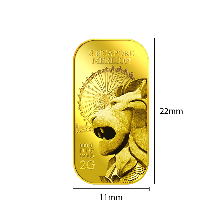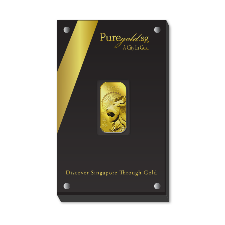 The image is embossed on a 2 grams 999.9 fine gold bar.