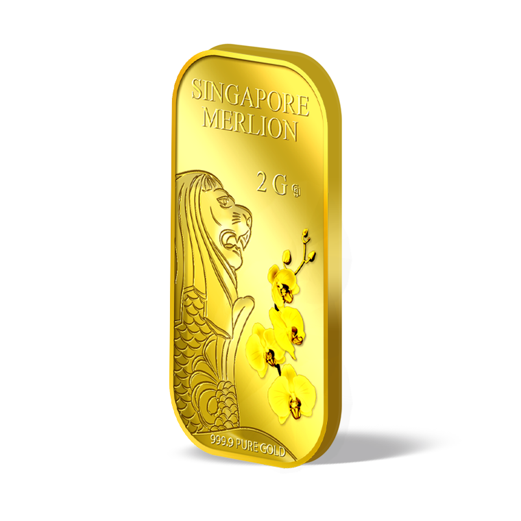 The image is embossed on a 2 grams 999.9 fine gold bar.