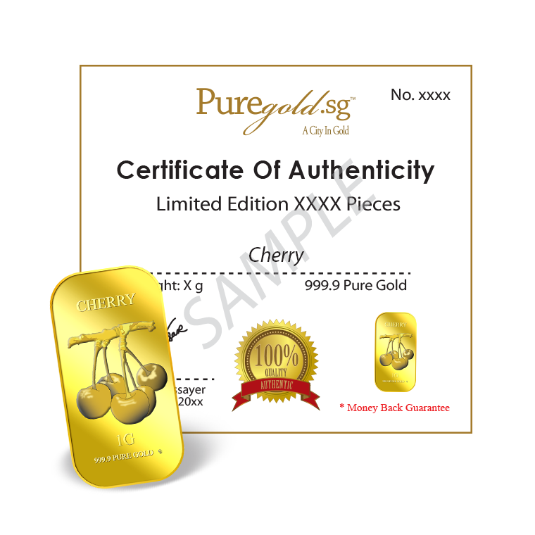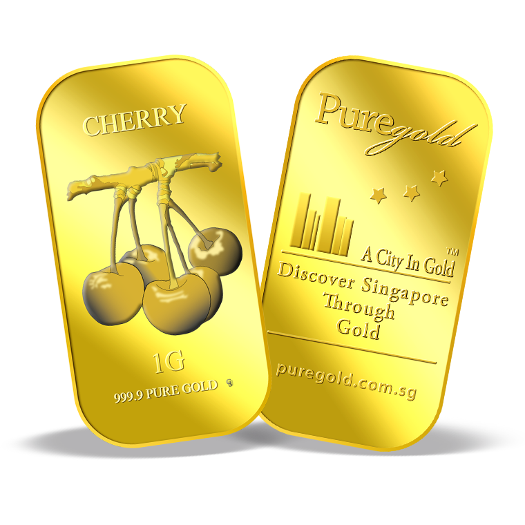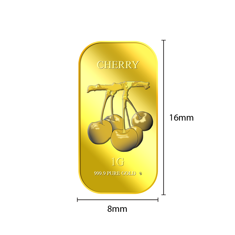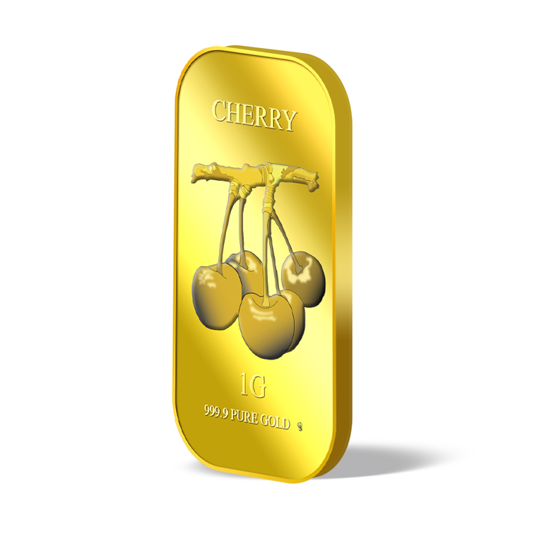 The image is embossed on a 1 gram 999.9 fine gold bar.