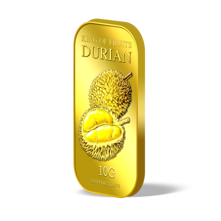 The image is embossed on a 10 grams 999.9 fine gold bar.