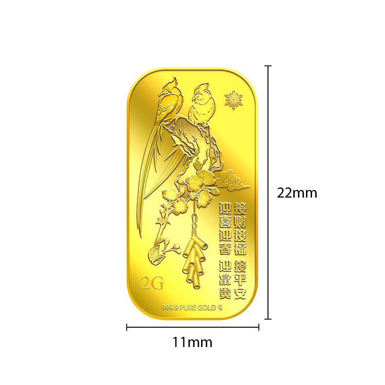 The image is embossed on a 2 grams 999.9 fine gold bar.
