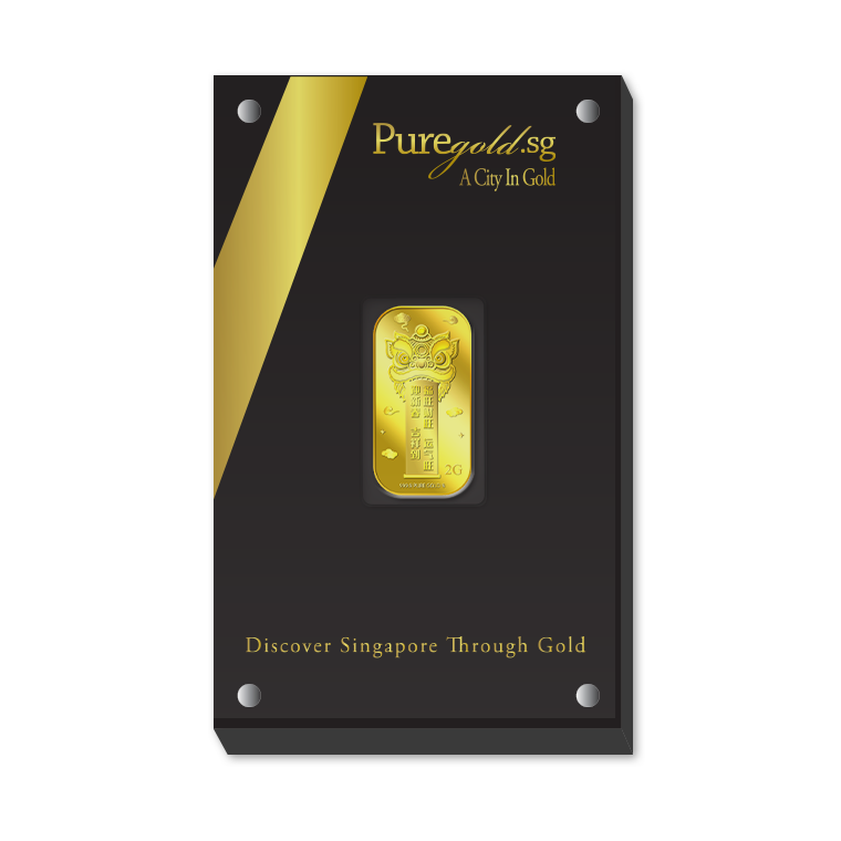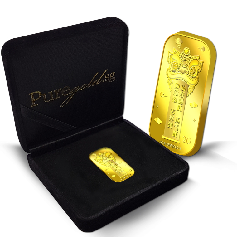 The image is embossed on a 2 grams 999.9 fine gold bar.