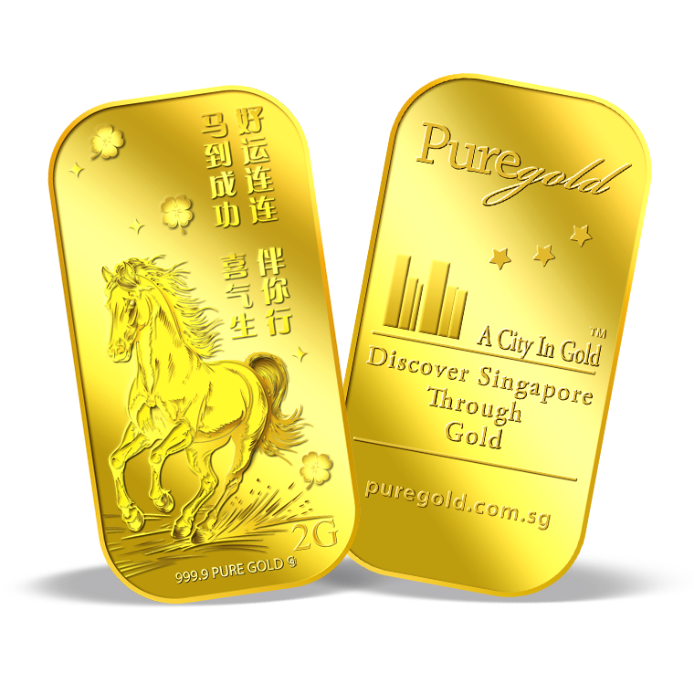 The image is embossed on a 2 grams 999.9 fine gold bar.